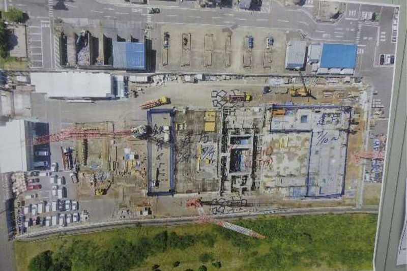 工事現場でのドローンによる撮影は、周囲に高い建物がない場合でも俯瞰の写真が撮れるといったメリットがある。